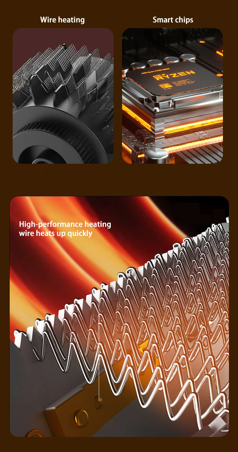 2. 【Well-designed】with 360° wide angle heating, warm air blows farther and wider. Adopt convection type circulation heating, 360° circulation to produce hot air. Silent system design, low noise does not disturb.