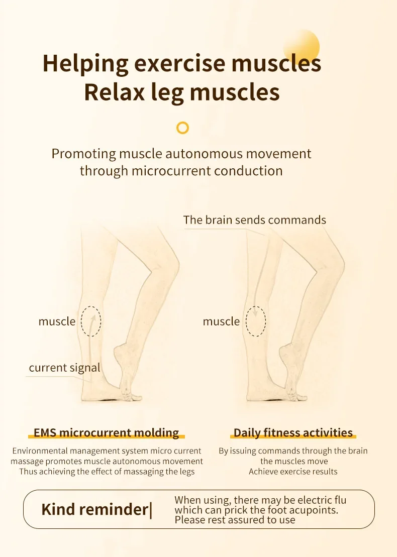 2.Use micro-current pulses to massage acupoints to effectively eliminate leg edema and fat, relieve leg muscle stiffness, and create beautiful and slender legs.
