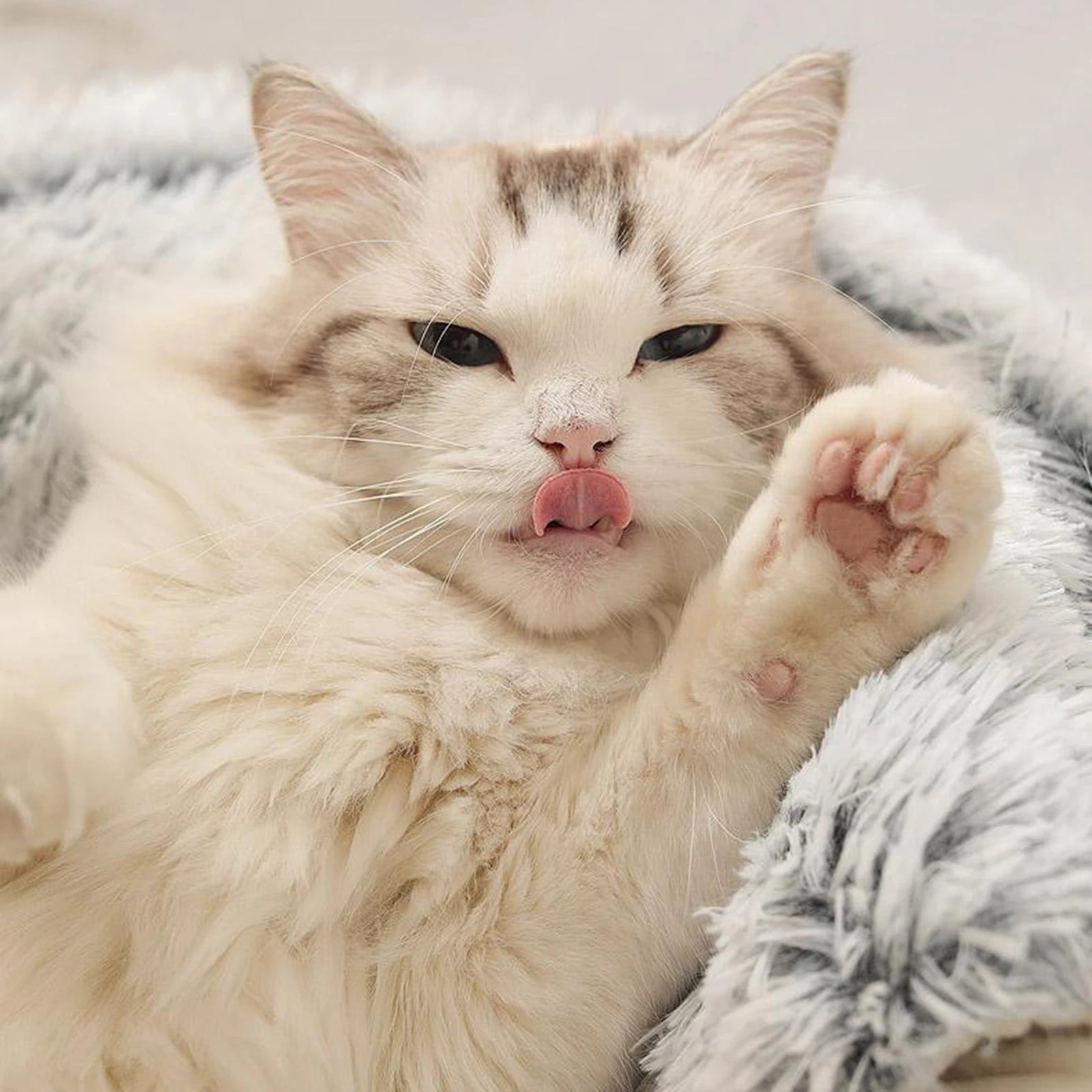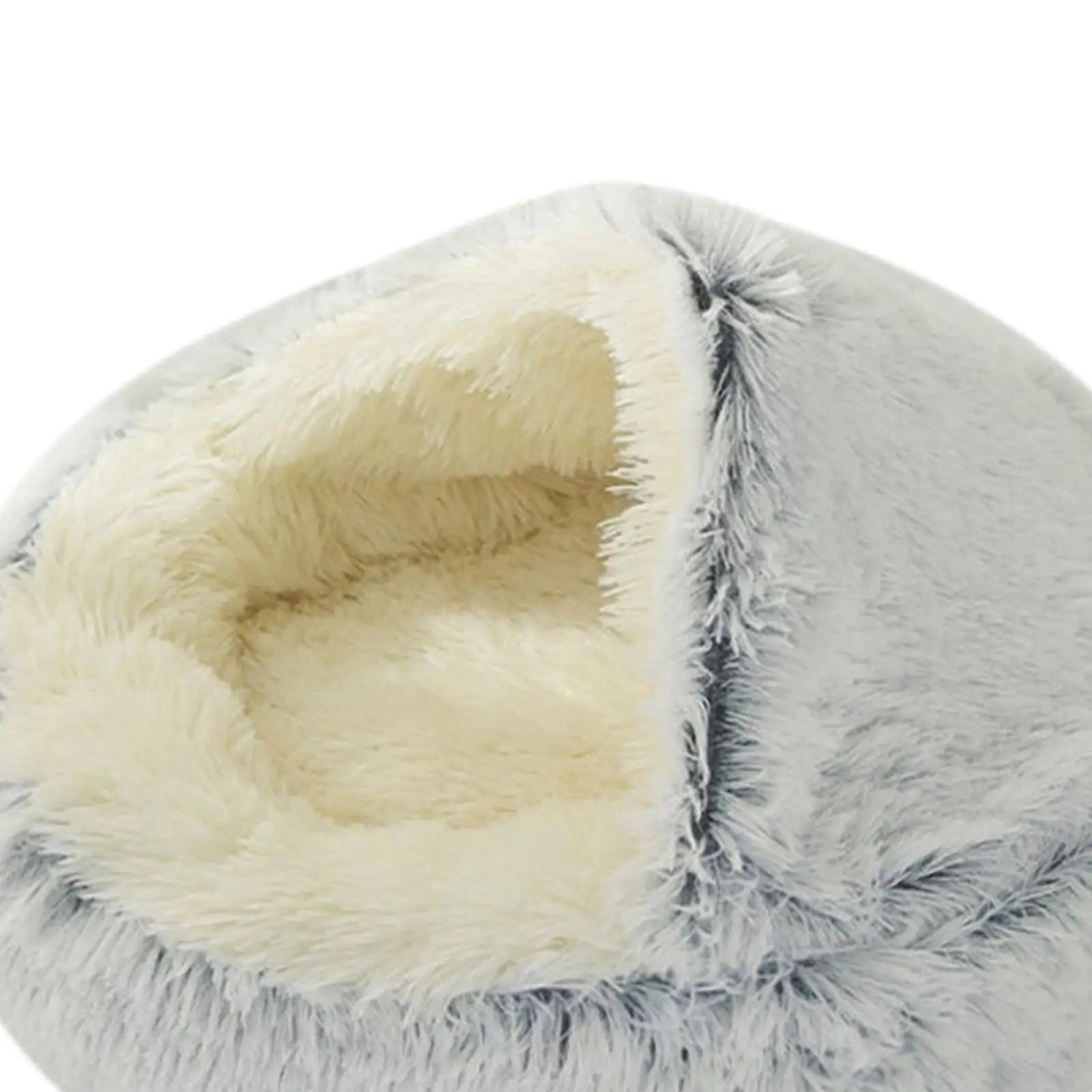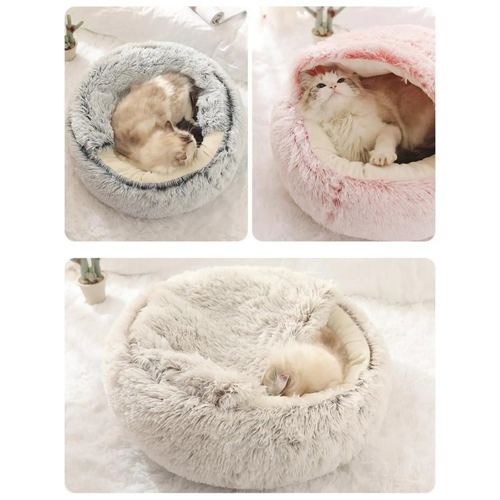Self Warm Plush Hooded Pet Bed Round Fluffy Soft Cat Bed Pet Warm Cushion Cat Dog 2 in 1 Sleeping Nest Cave for Small Medium Pet