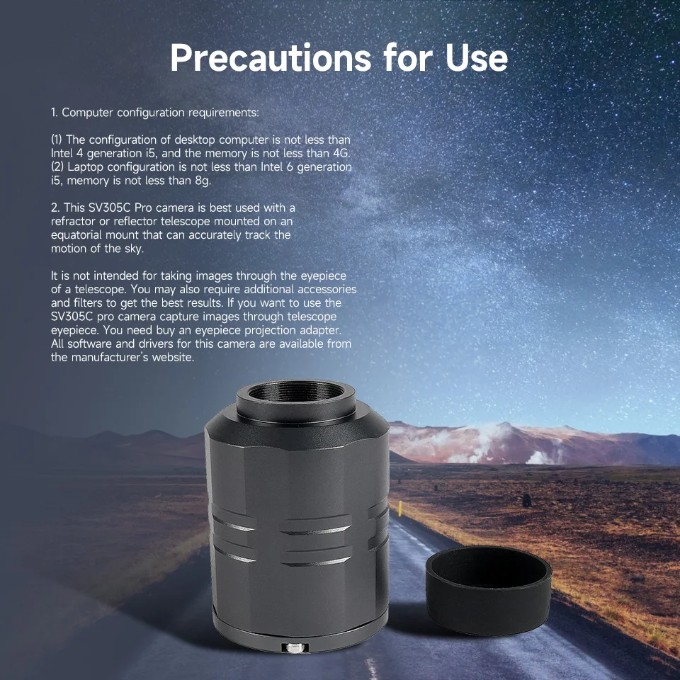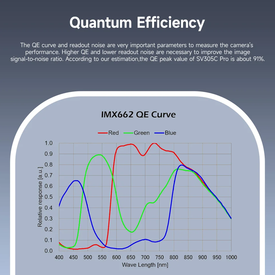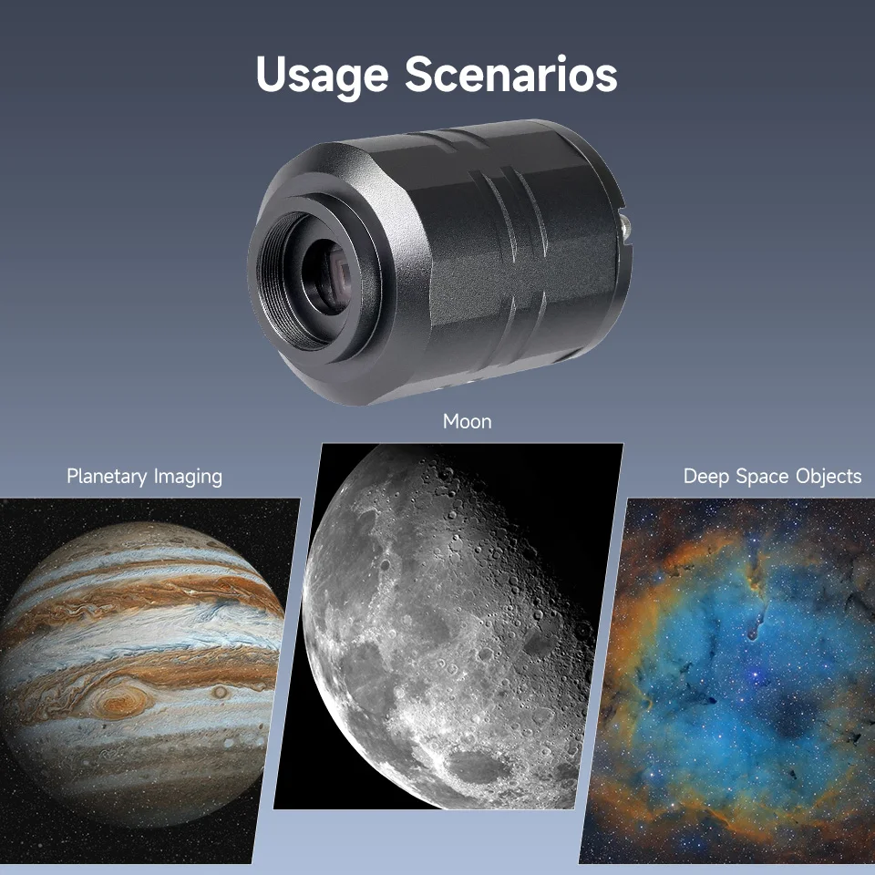 Planetary camera, with ultra-high sensitivity and low noise, it captures clear planetary details even in low light. High frame rate ensures sharp images of fast-moving planets like Jupiter and Saturn