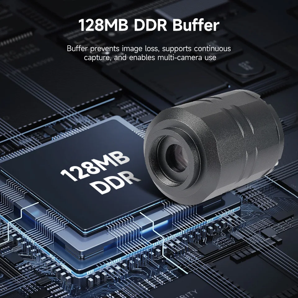 The planetary camera with a 128MB DDR buffer prevents image loss, supporting continuous capture for uninterrupted imaging sessions, perfect for capturing detailed planetary shots without missing a moment