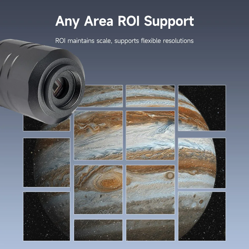 The planetary camera supports Any Area ROI, allowing you to capture specific regions of interest without losing scale. With flexible resolution options, you can tailor your imaging for optimal performance