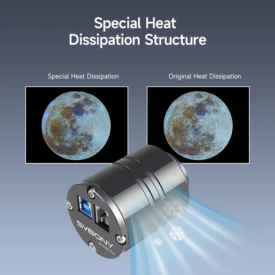 The planetary camera with special heat dissipation ensures stability during long exposures, reducing noise and improving image quality for clear, high-quality planetary shots