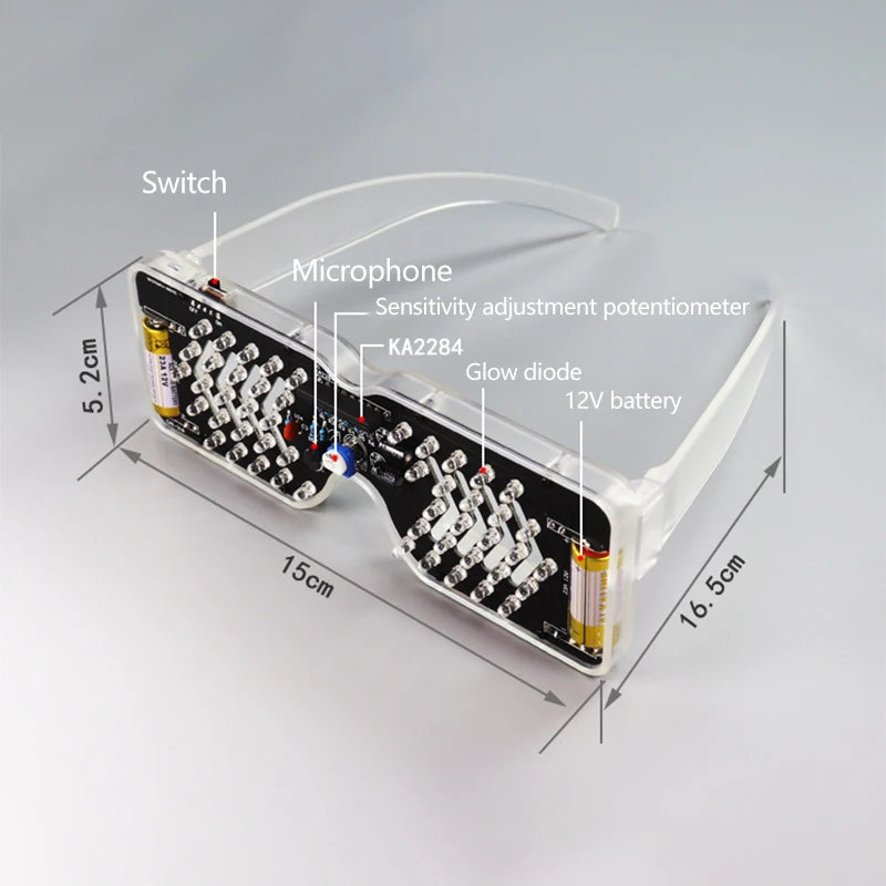 Voice Activated LED Light Emitting Glasses Making Kit Light-emitting Diode Flashing Light DIY Electronic Kit Soldering Assembly